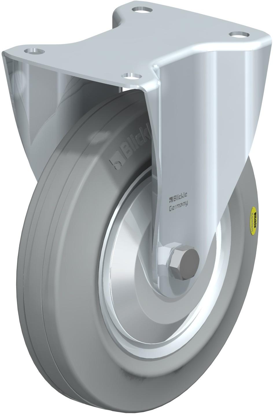 Made of ?Blickle Comfort? two-component solid rubber, with hard rubber core and highly elastic rubber tread.