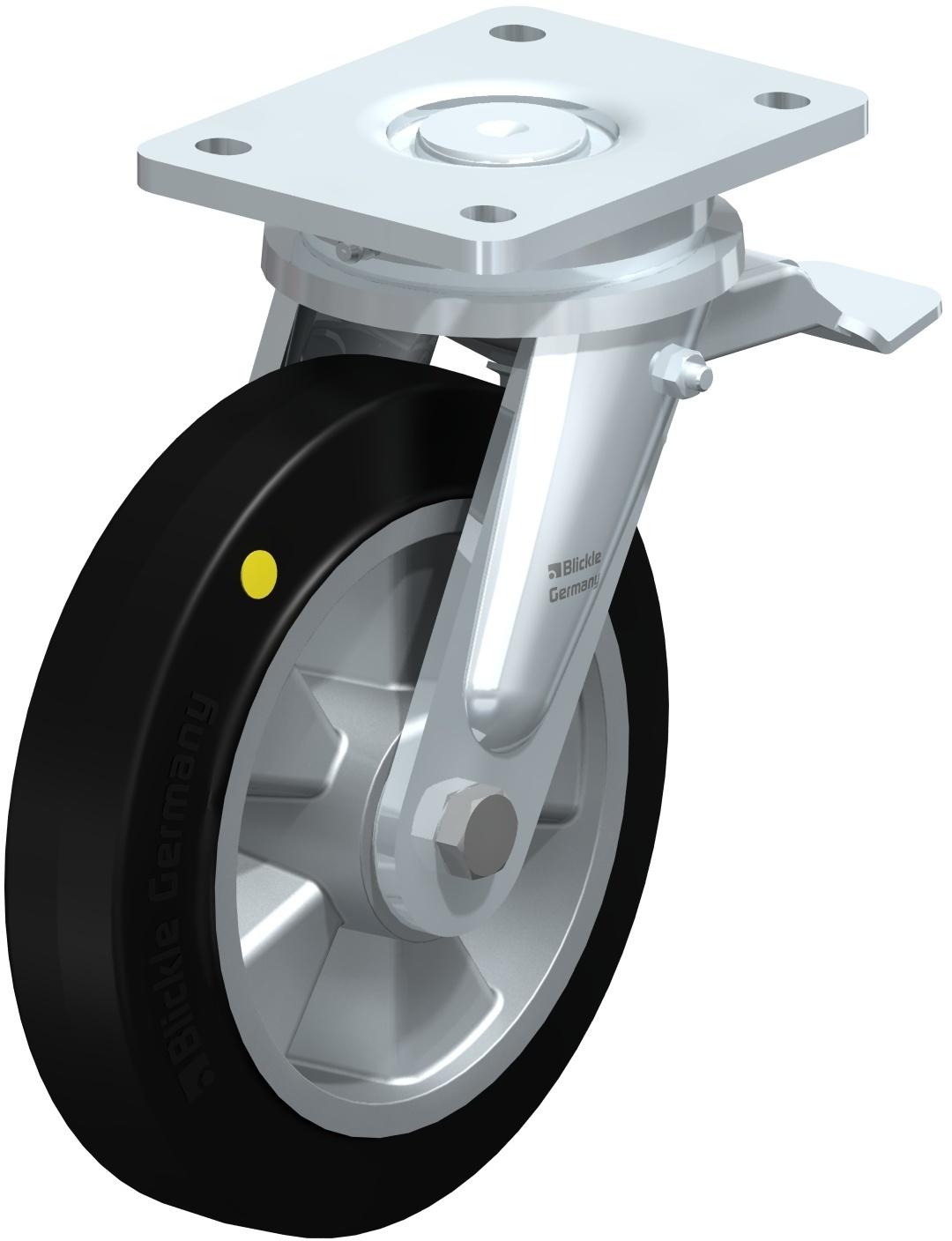 Heavy duty wheel with elastic solid rubber tyres ?Blickle EasyRoll?, with aluminium wheel centre