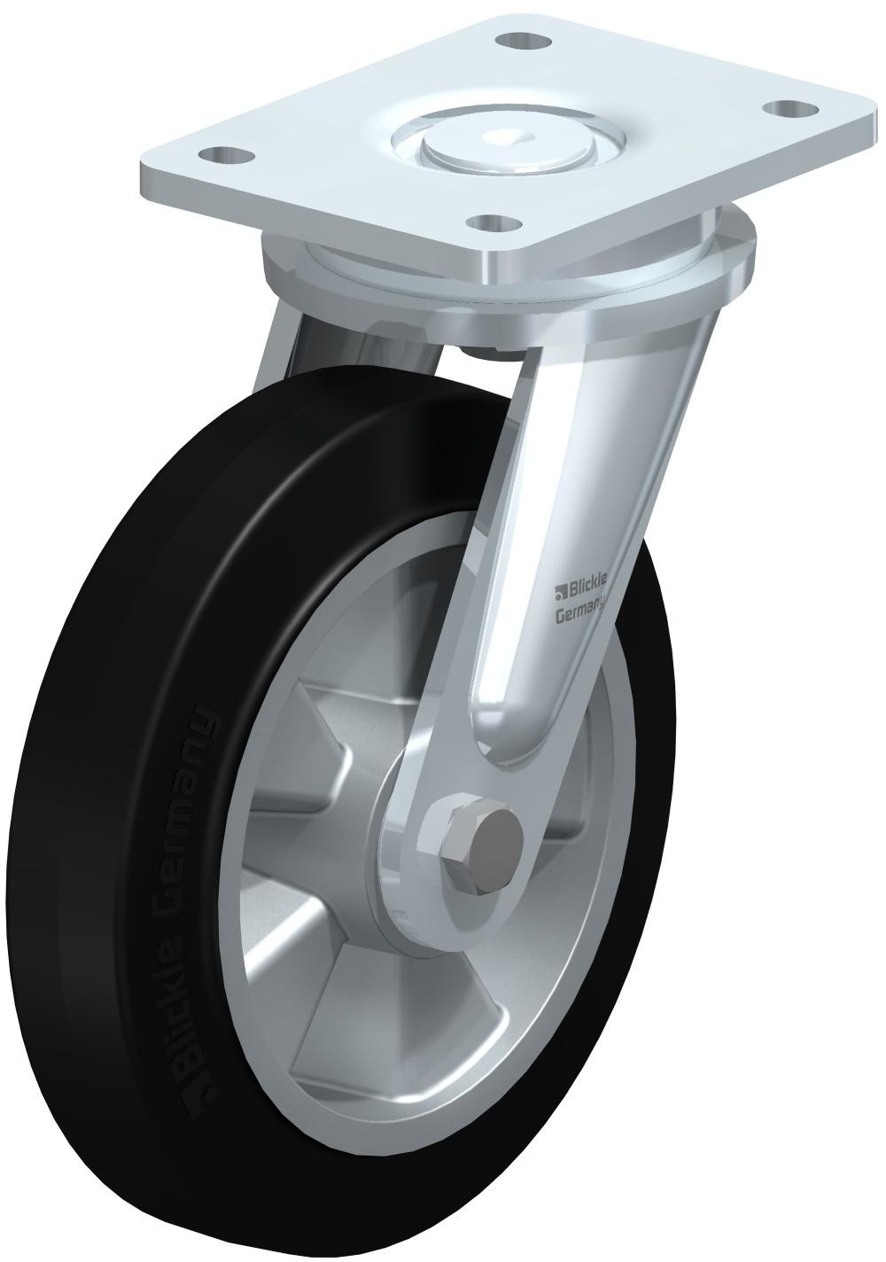 Heavy duty wheel with elastic solid rubber tyres ?Blickle EasyRoll?, with aluminium wheel centre